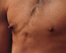 This 22 year old has dark piercing eyes, a furry chest and a straight