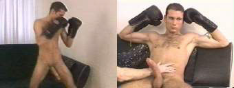 his hand to bring the boxer's long cock to full erection. Adamos finally